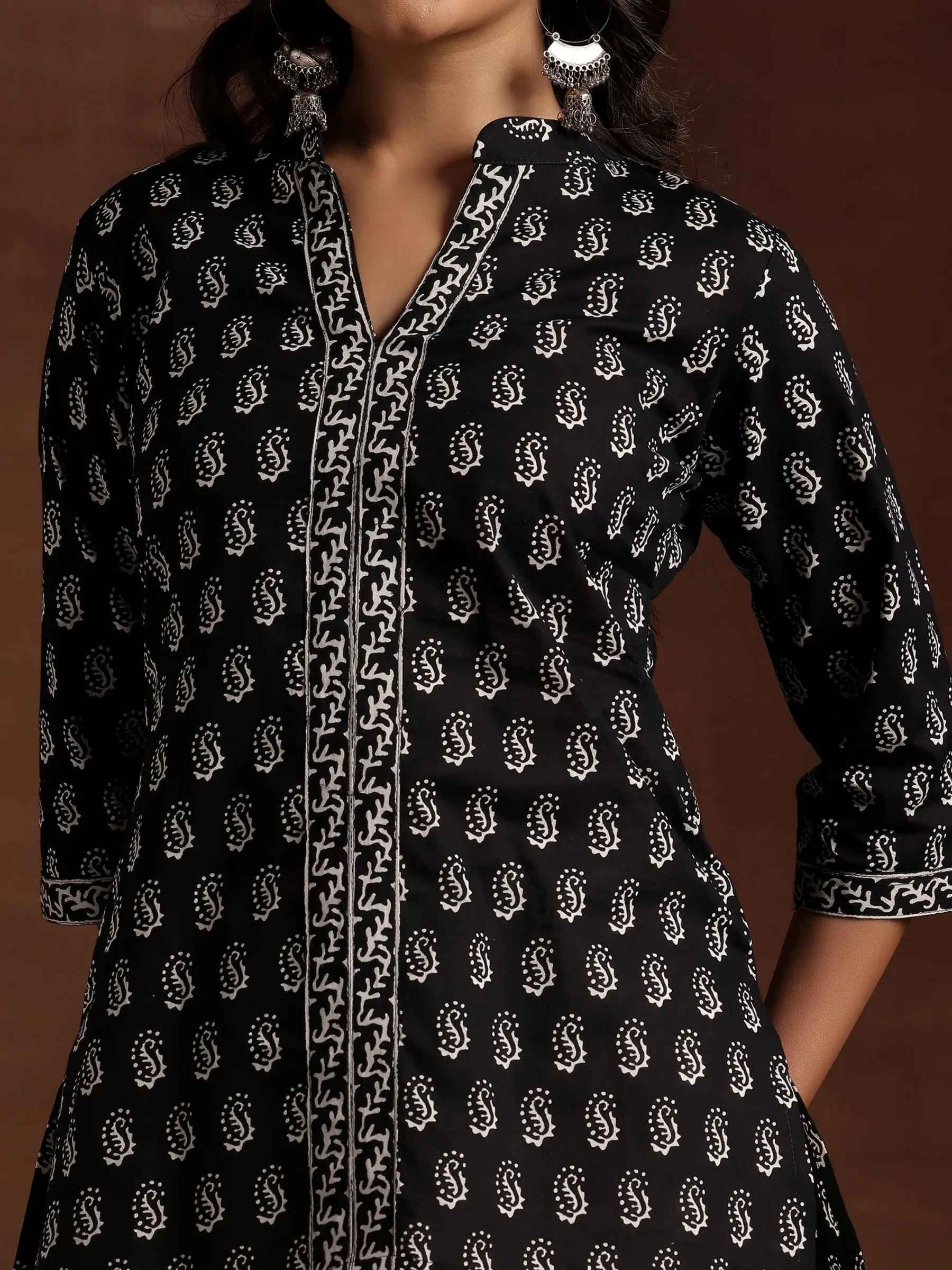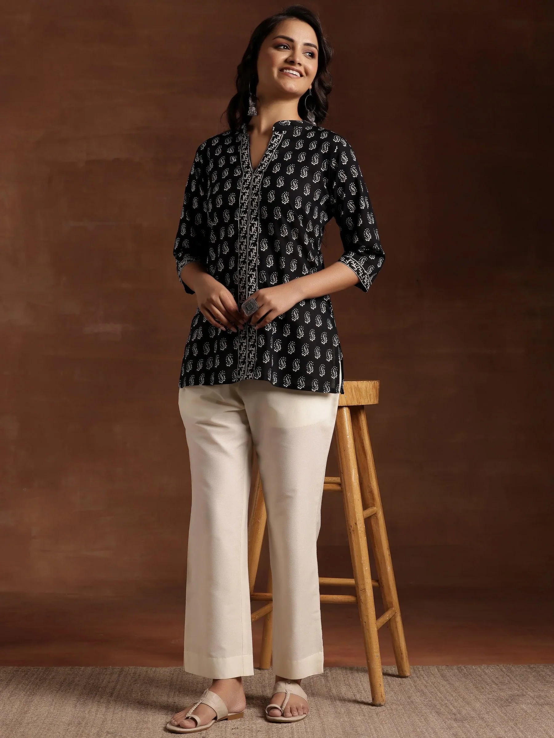 Black Printed Cotton Straight Kurti