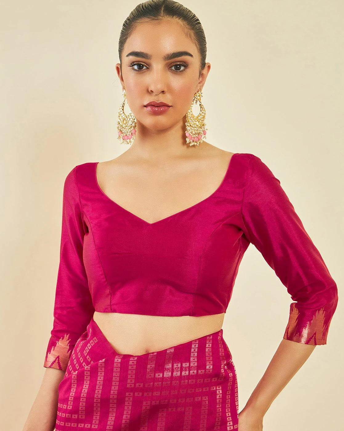 - The last image gives a detailed look of the blouse piece that comes with this saree (The blouse in the images is only for styling purpose)