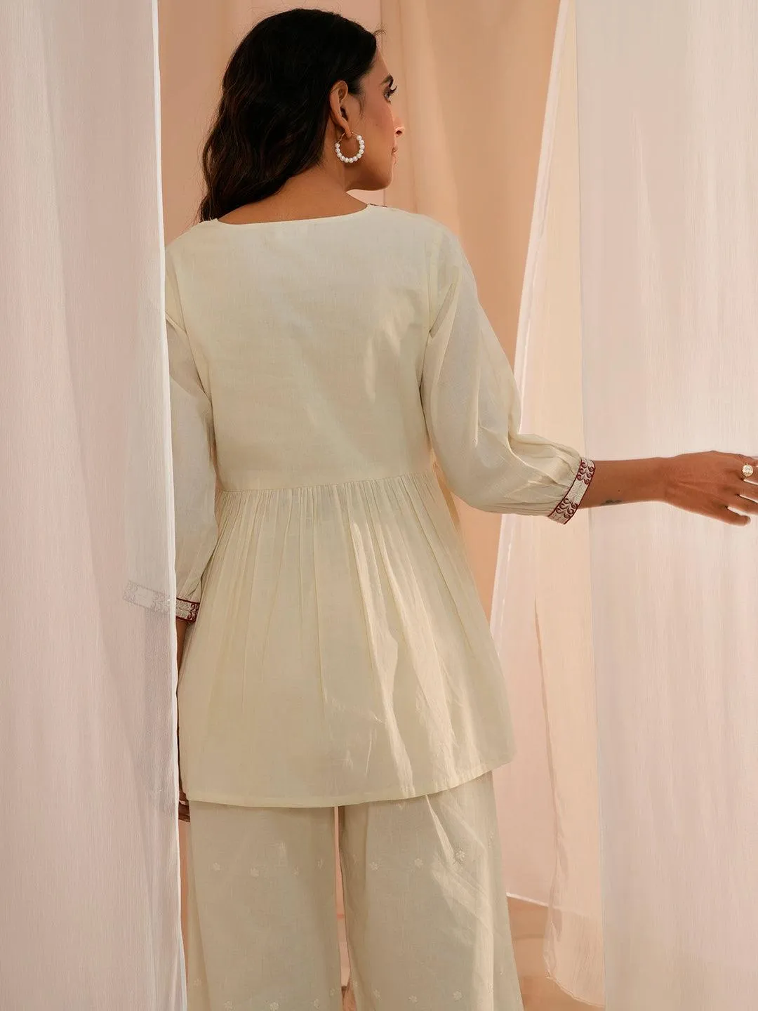 Off White Yoke Design Cotton A-Line Kurti