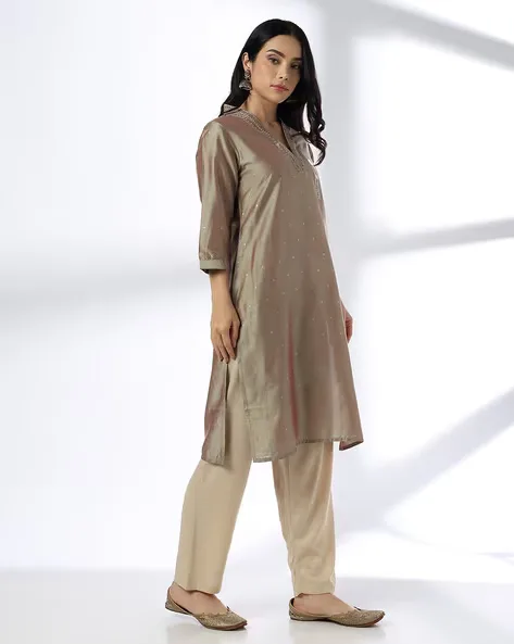 Women Straight Kurta with Embellished Yoke