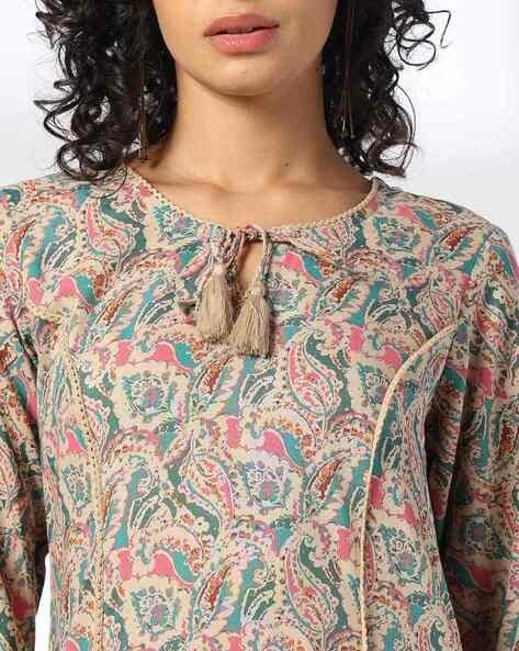Women Paisley Print Straight Kurta With Neck Tie-Up