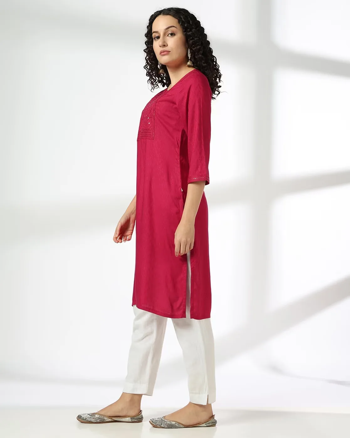 Women Straight Kurta with Embellished Yoke